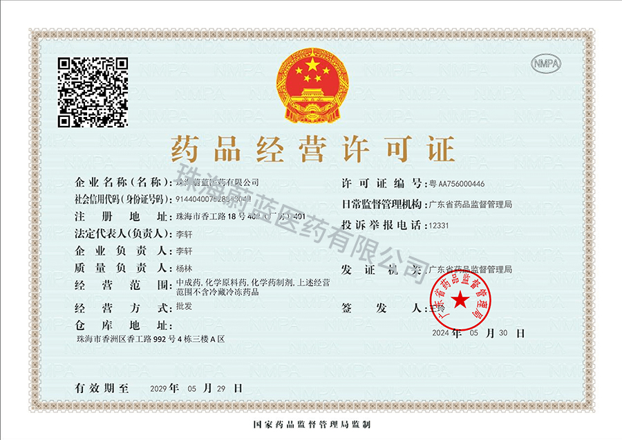 《藥品經(jīng)營許可證》 證號:粵AA756000446