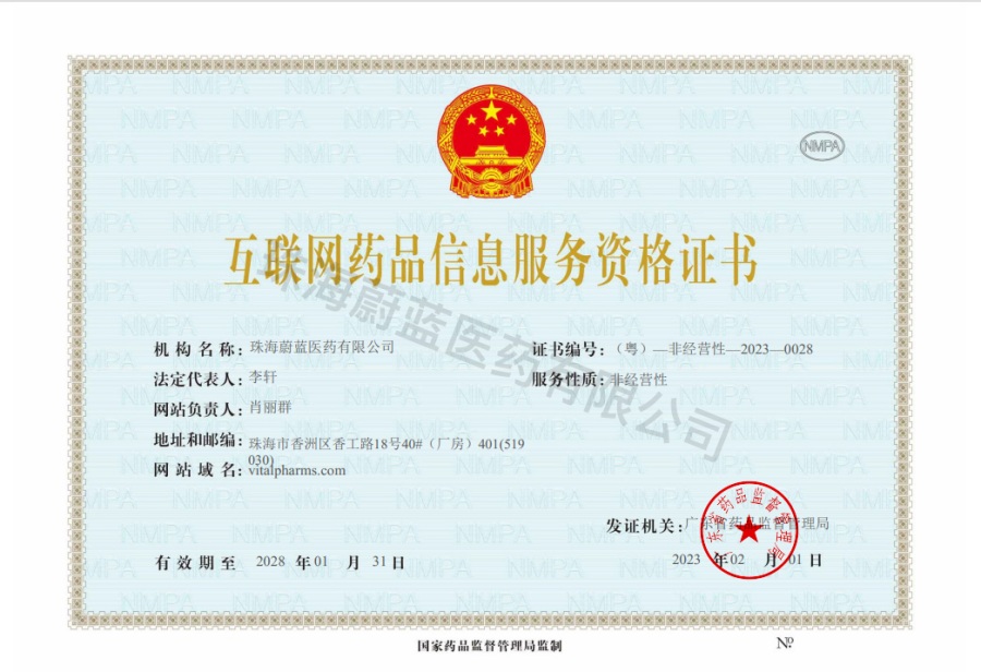 互聯(lián)網(wǎng)藥品信息服務資格證書:(粵)-非經(jīng)營性-2023-0028